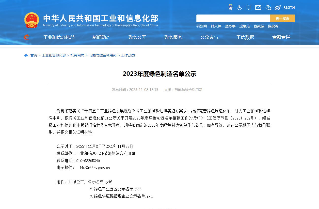 11月8日,工業(yè)和信息化部公示了2023年度綠色供應(yīng)鏈管理企業(yè)名單,浙江臺(tái)華新材料股份有限公司位列榜中。