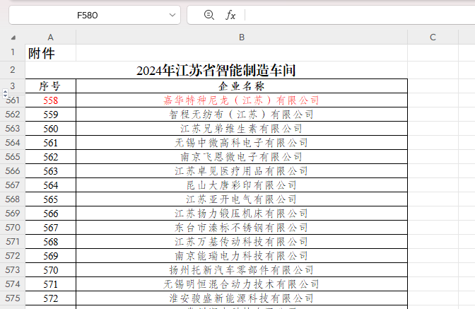 8月1日,江蘇省工業和信息化廳發布了《關于2024年江蘇省智能制造車間等名單的公示》,嘉華特種尼龍(江蘇)有限公司成功入選該名單。