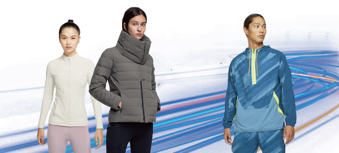總結山野戶外探險及城市輕戶外不同服裝需求,通過聚酰胺纖維、氨綸彈性纖維等原材料開發防水透濕、防風、透氣、紫外線防護、細菌防護、吸濕速干等功能性面料,滿足極限運動和戶外穿搭的安全保障。同時,面料顏色飽滿且具備優秀的色牢度,質感挺闊有型。